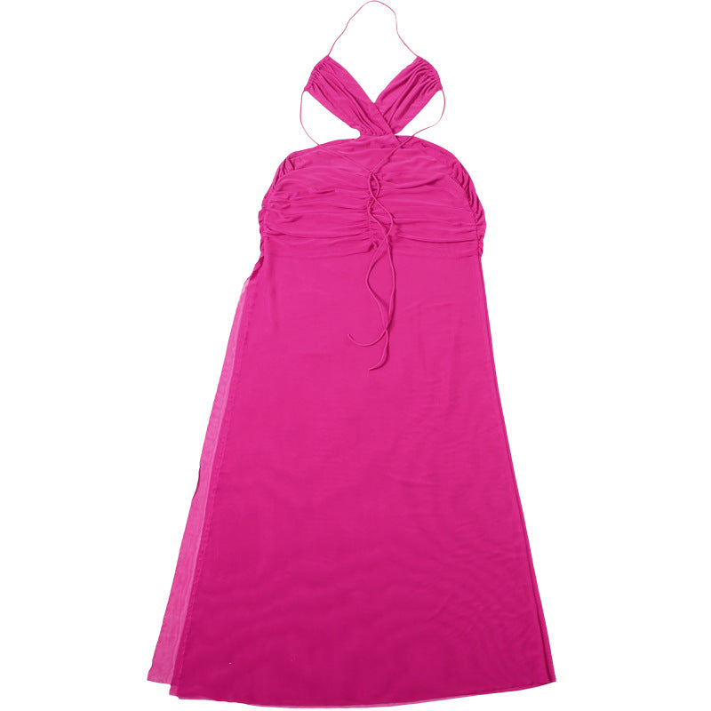 Step into summer with confidence in this Lace-Up Halter Backless Maxi Dress.