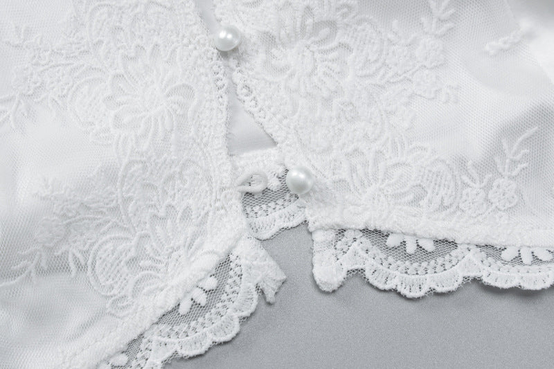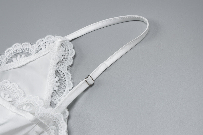 With its sultry open front, delicate lace trim, and vintage-style buckle closures, this Y2K-inspired piece is made to turn heads.