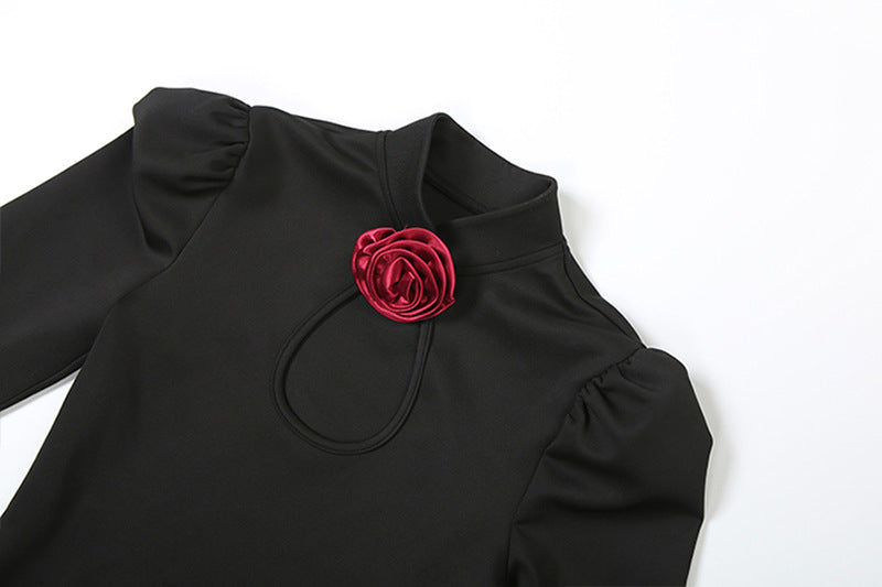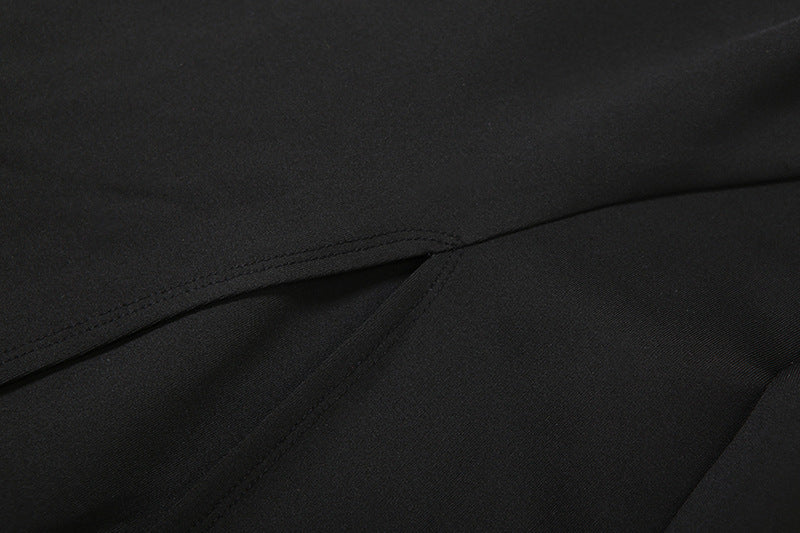 Meet your must-have dress for bold fall moments. This slim-fit long sleeve dress features a modern stand collar, sharp cutout details, and a dramatic thigh-high slit that brings just the right amount of edge. Designed for evening outings, events, or standout city looks, it's where minimalism meets bold tailoring.