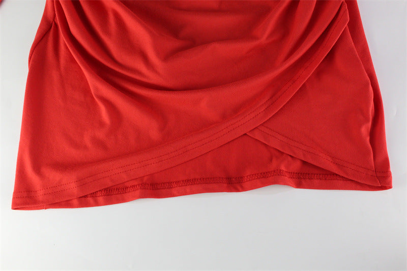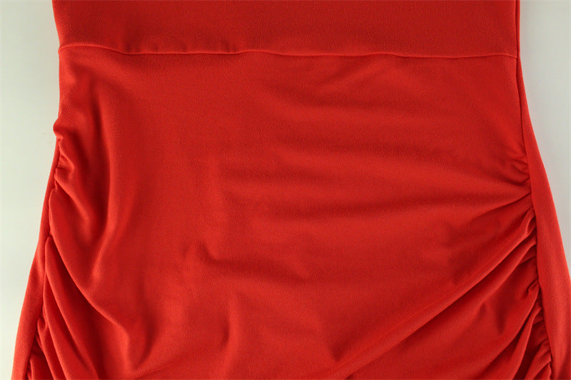 Featuring a unique irregular hemline that adds a dynamic twist to your look, this dress highlights your silhouette with a flattering slim fit and soft pleated details.