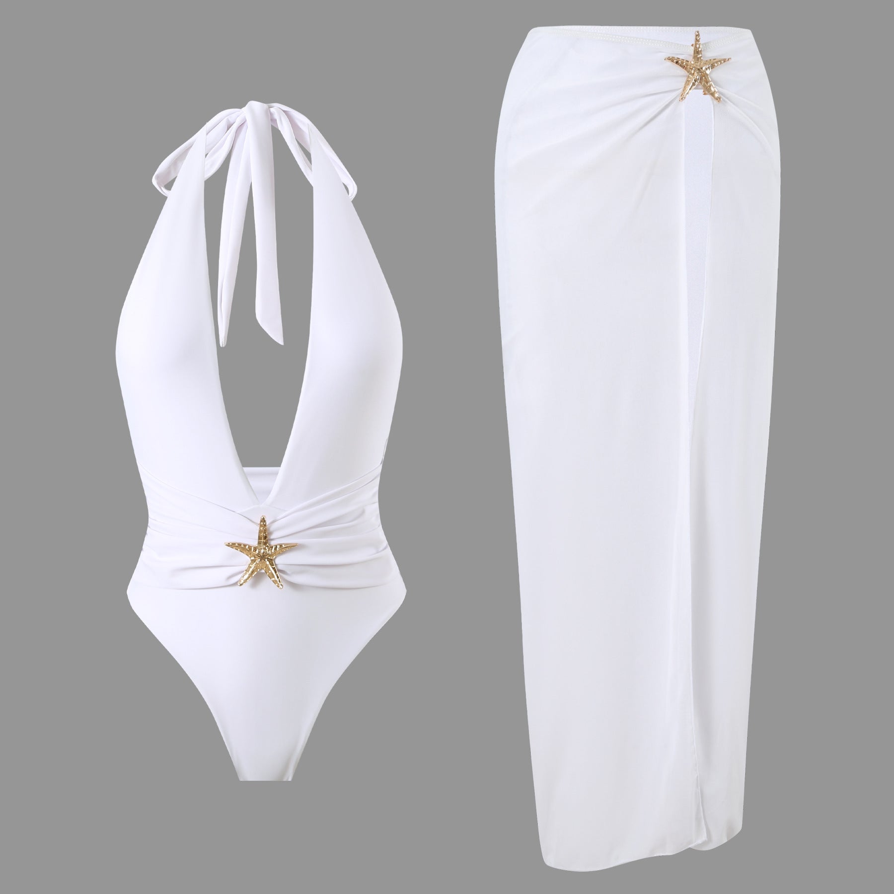 Womens Mesh Halter One Piece Swimsuit with Split Maxi Cover Up | noémi