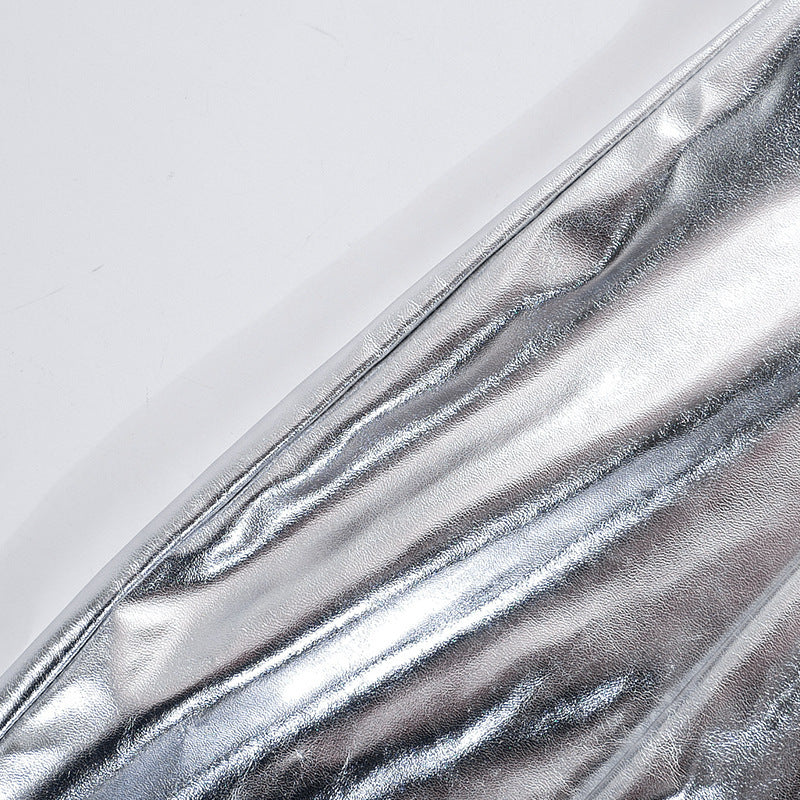 The metallic finish adds a modern touch, perfect for day-to-night occasions.