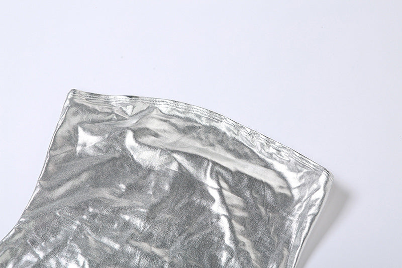 Featuring a backless design and a curve-hugging slim fit, this mini dress pairs a metallic sheen with a timeless tube top silhouette. It’s lightweight, flattering, and perfect for any occasion where you want to make an impact.