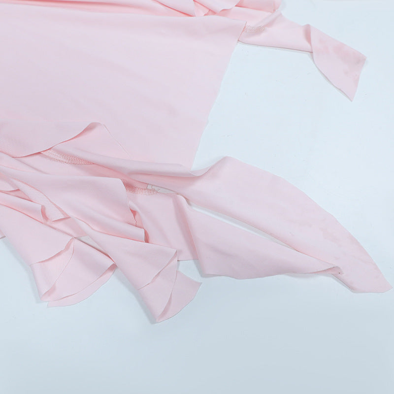 A soft blend of structure and fluidity, this off shoulder lace dress features a unique jellyfish-style hem that adds motion and texture.