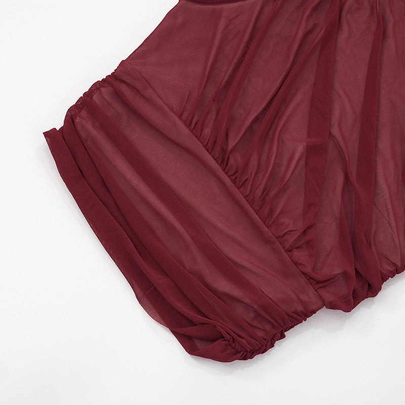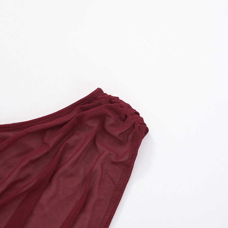 The noémi One-Shoulder Ruched Mesh Crop Top is made for moments that matter—think sultry nights, rooftop drinks, and turning every hallway into a runway.