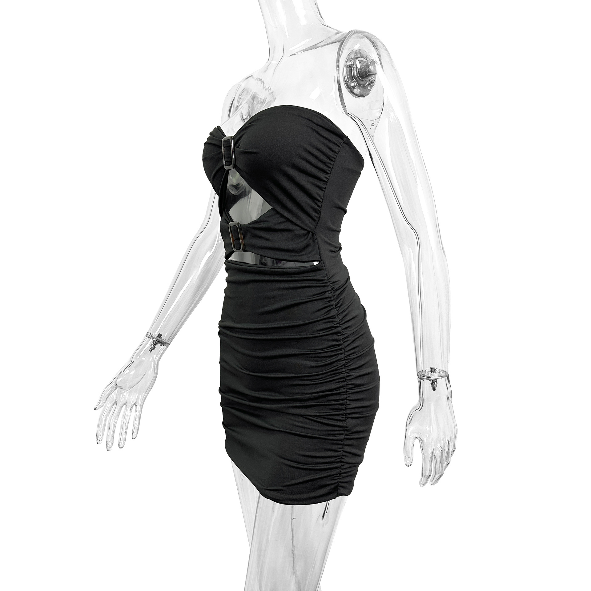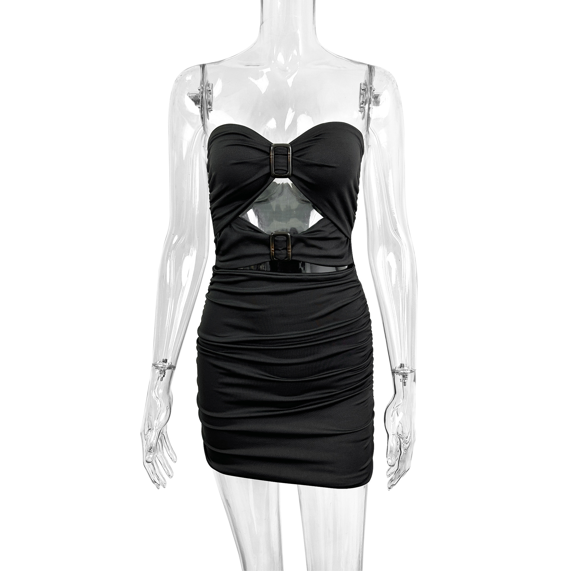 Featuring an off-shoulder neckline with bold cutout detailing, this tube dress blends clean lines with subtle edge.