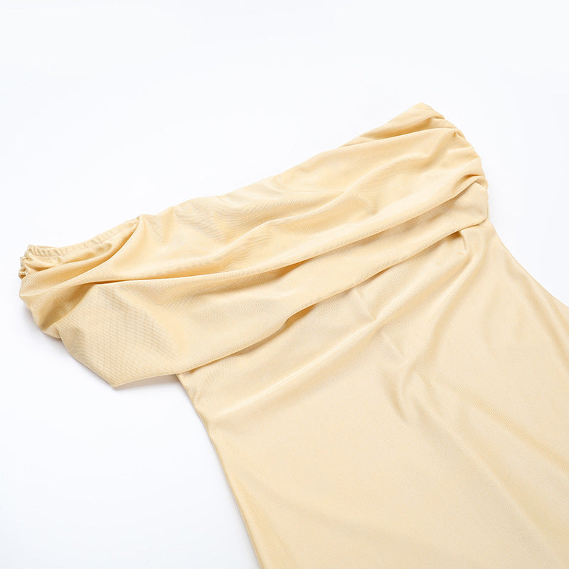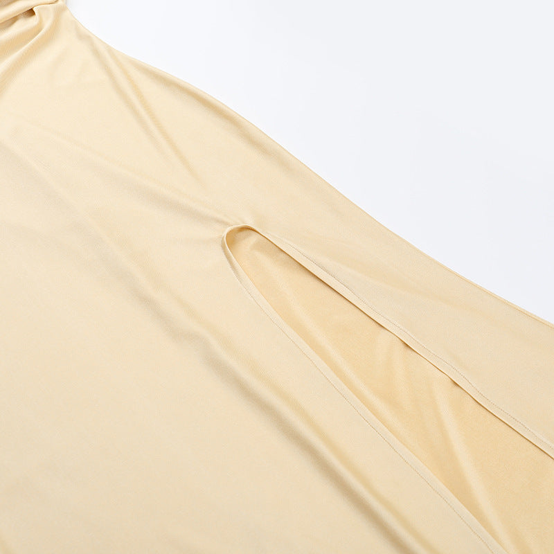 Step into spring with confidence in this slim fit one-shoulder dress — a perfect blend of modern design and flattering details. Featuring a single sleeve and daring high slit, this dress creates a striking silhouette that moves with you. Crafted for those who want style and comfort in equal measure, it’s ideal for special occasions, evening events, or stylish daytime looks.