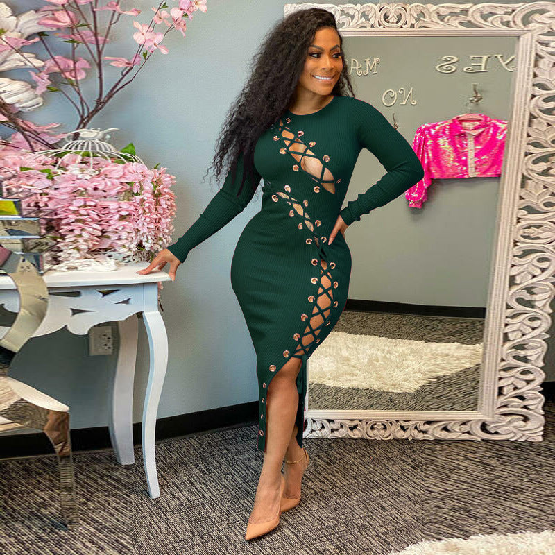 Featuring statement cutouts and a strappy silhouette, this bodycon piece is for those who lead with confident, directional style.
