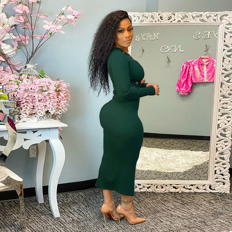 - Bodycon fit hugs curves with a sleek finish