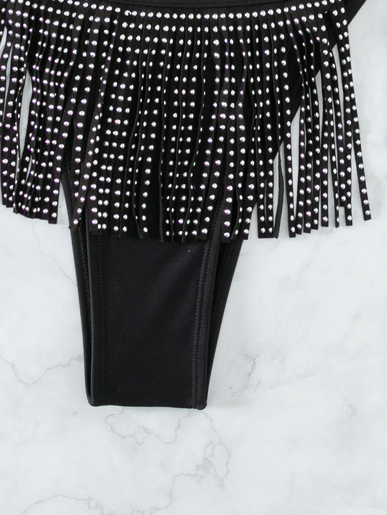 Womens Tassel Rhinestone Bikini | V Neck Halter Strappy Three Piece Swimwear | noémi