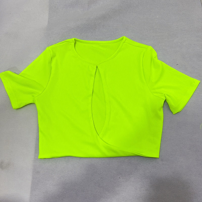Move with confidence in this 2-piece workout set designed for both performance and style. Featuring a hollow-out short sleeve crop top and bum-lift high-waisted shorts, this set is built to support your workouts while flattering your figure. The breathable, stretch fabric ensures comfort through every rep, run, or stretch.