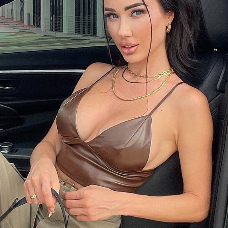 Womens V Neck Slim Fit Spaghetti Strap Crop Top | noémi