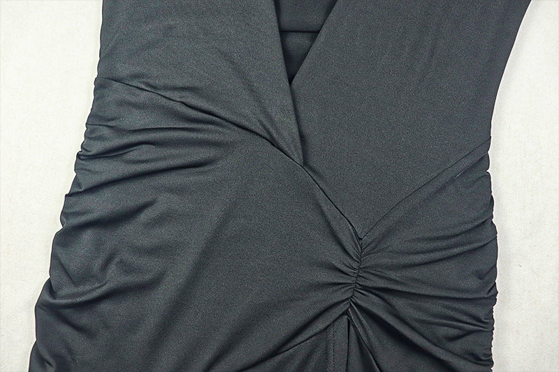 Discover flattering style with this Women’s Waist-Slimming V-Neck Dress, featuring delicate pleats and a draped chest wrap design that enhances your silhouette.
