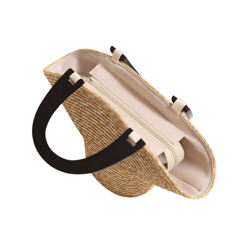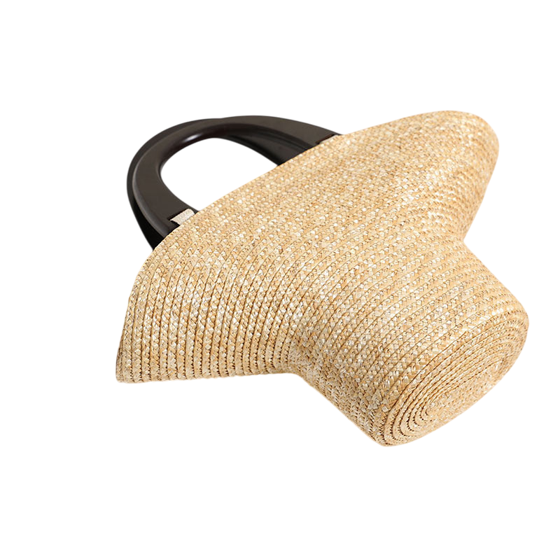 Lightweight, this wooden‑handle straw hat bag delivers breezy summer charm—perfect for beach days, farmers’ markets, or casual strolls.
