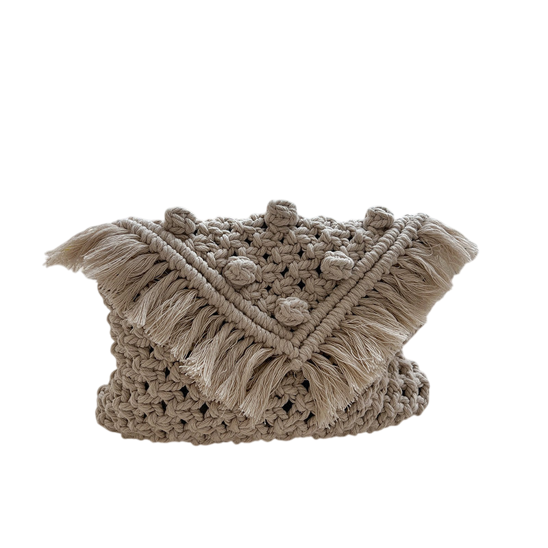 Woven Cotton Crossbody Bag – Boho Tassel, Natural Beige, Lightweight | noémi