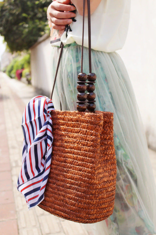 Featuring a long, comfortable shoulder strap and playful wooden bead accents, this bag balances laid-back vibes with chic details. Whether you're styling it with a flowing dress or casual denim, it completes your look with a touch of boho elegance.
