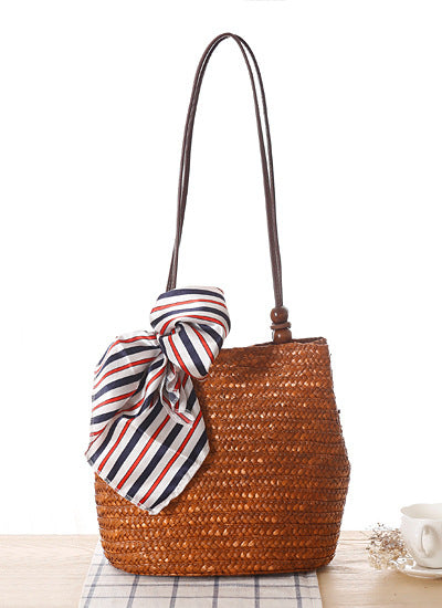 Woven Straw Shoulder Bag | Summer Beach Tote with Long Strap | noémi