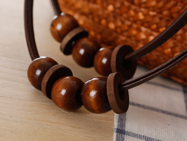 - Natural wooden bead detailing
